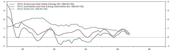 在2025年10月1日至11月12日的政府關門期間,BLS暫停了大部分現場和電話調查,導致10月數據全面缺失,無法追溯收集。因此,BLS大量采取Carry Forward,將9月數據直接平移到10月,作為11月計算的基線,這也是為什么11月通脹只有年化值沒有月環比值。這種處理方式確實人為地壓低了10月的CPI指數(因為假設和9月一樣),但根本問題是,在11月恢復樣本統計后,10月的低估是否會被自動修正。